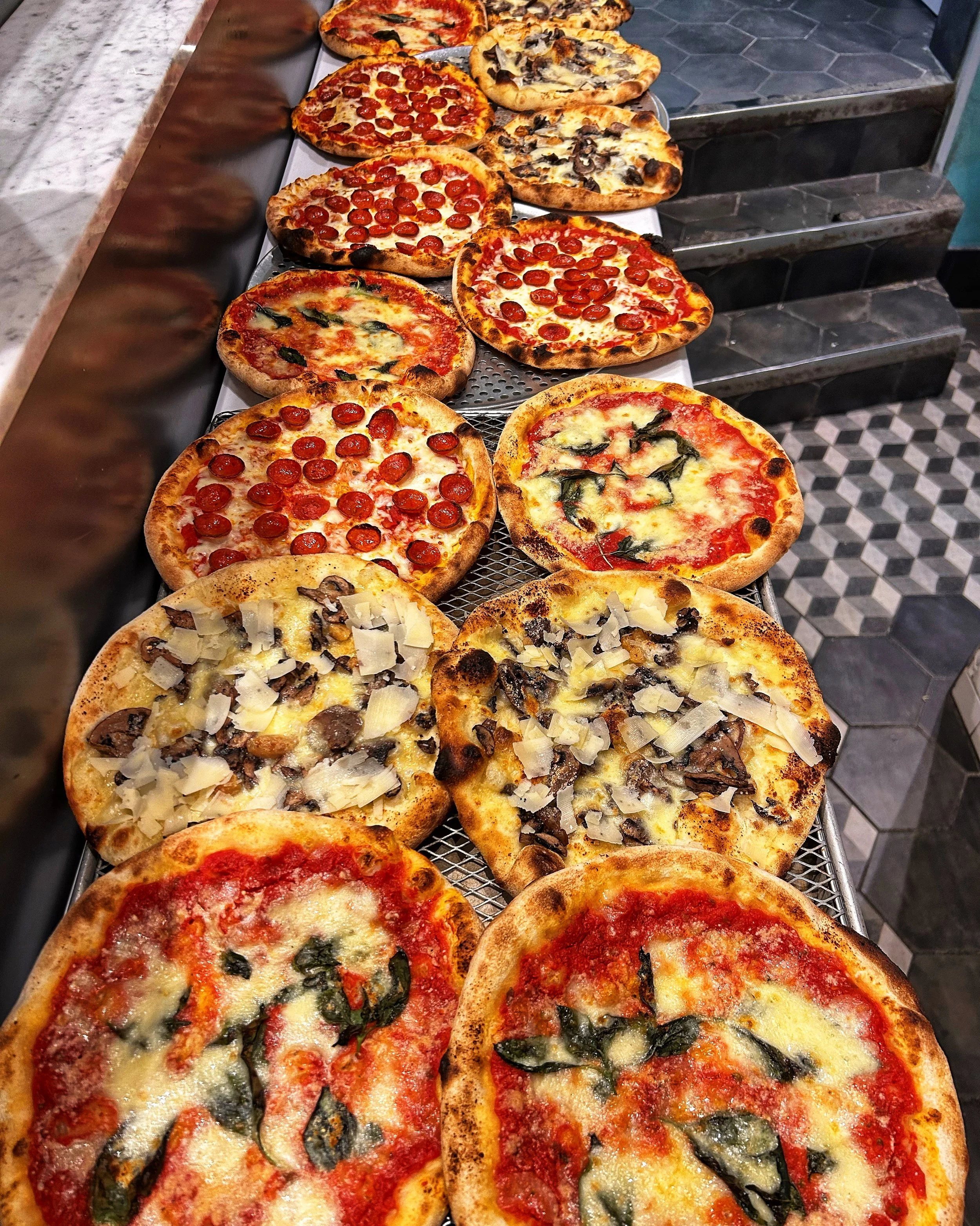 Give us a call at 647 348 2993 for take-out. It usually takes us 15-20 minutes to get your pizza ready unless we are really slammed. If you need to reheat your pizza later in the evening just pop it into a preheated 450° oven on a cookie sheet for 5 minutes or so...this works for breakfast/leftover pizza as well!